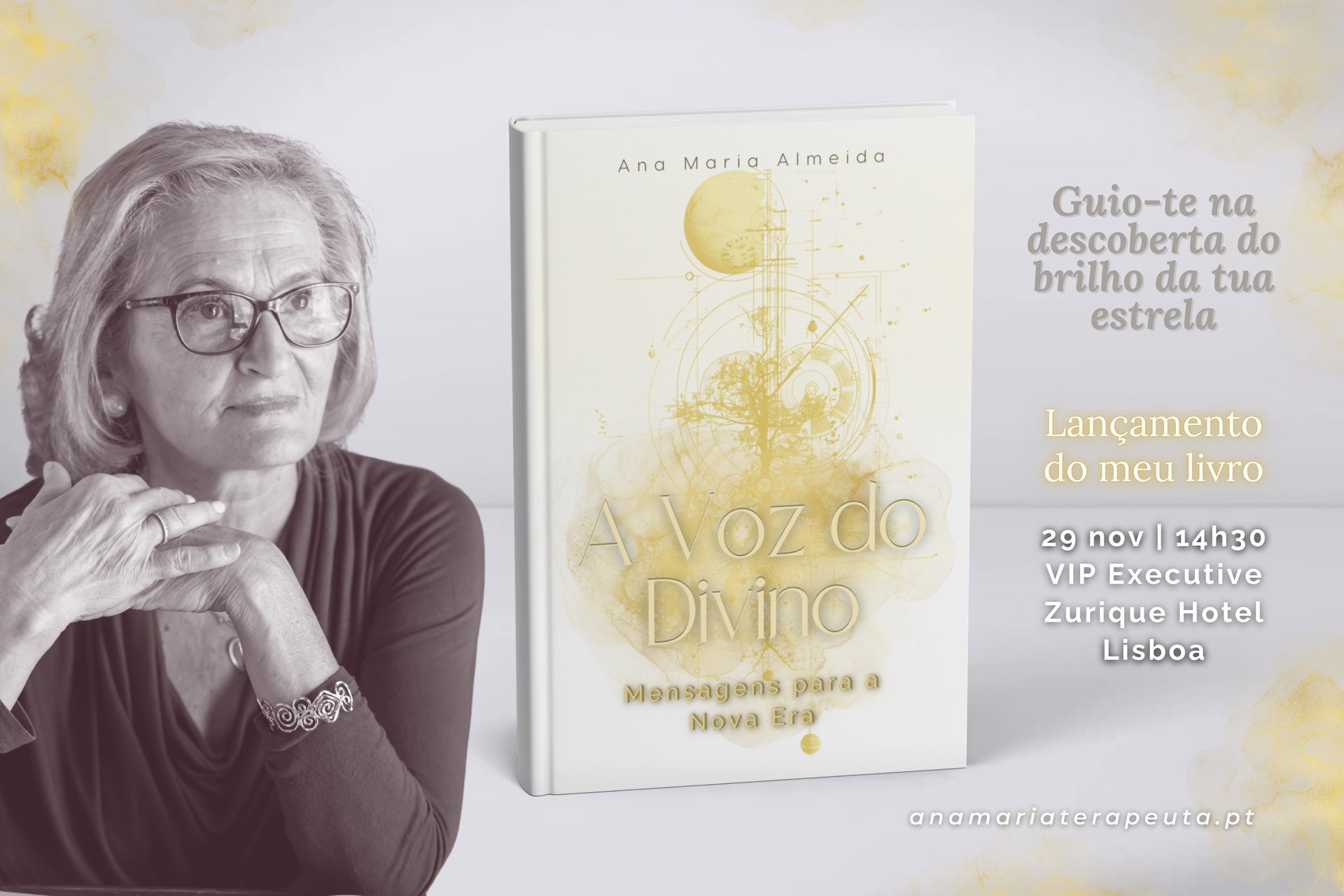 O meu livro “A Voz do Divino” será lançado no dia 29 de novembro de 2025, às 14h30, no VIP Executive Zurique Hotel, em Lisboa. Será um momento de celebração, partilha e encontro, onde poderás sentir de perto a energia que inspirou estas páginas.